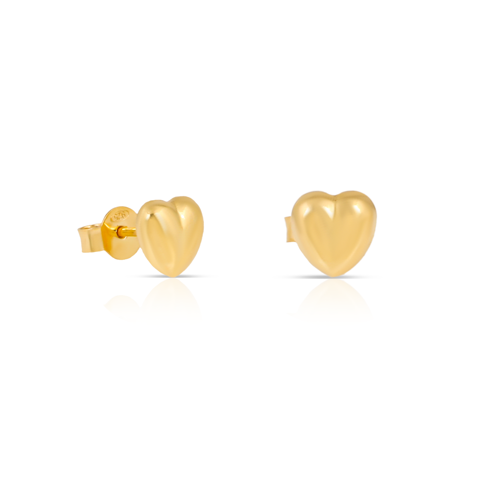 أقراط على شكل قلب من فضة عيار 925 مطلية بالذهب، بتصميم أنثوي ناعم يرمز للحب والرقي.