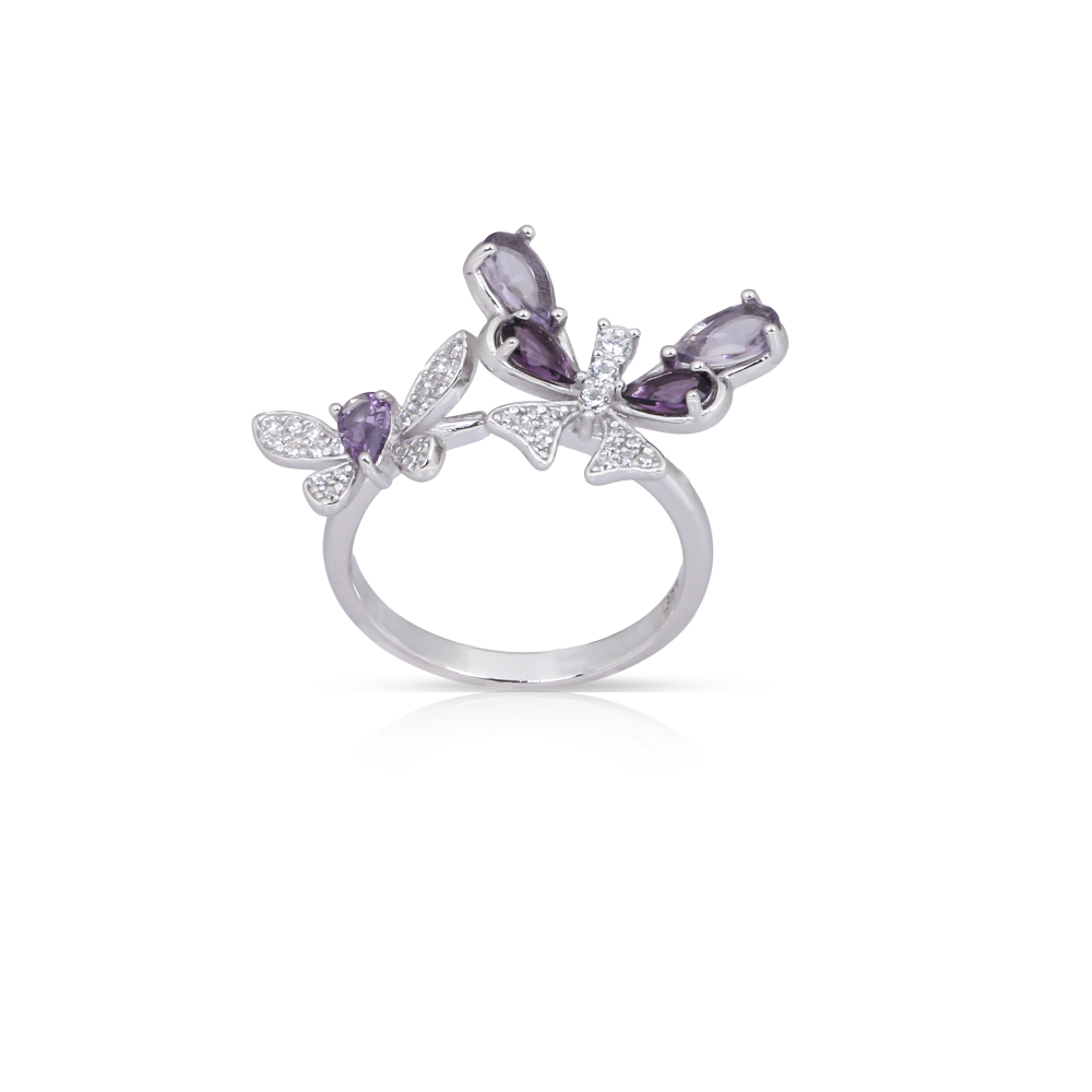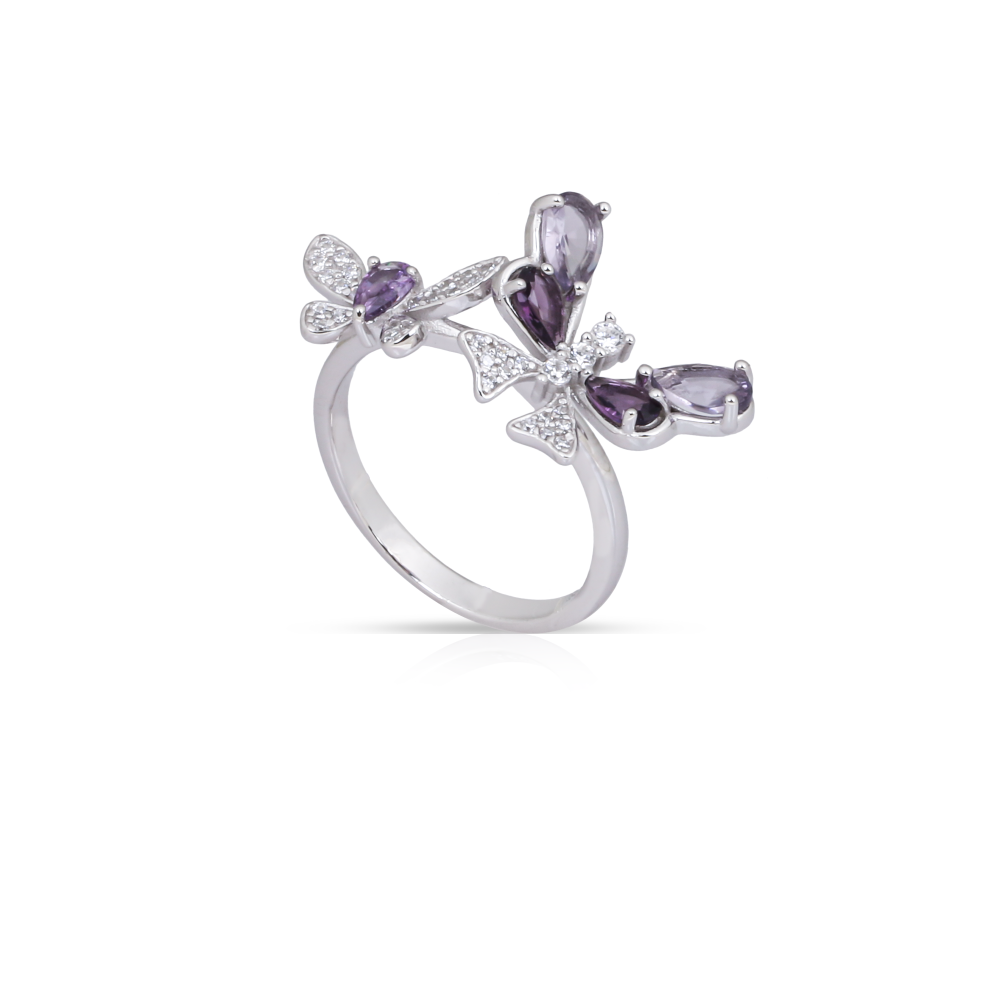 خاتم الفراشات بأحجار وفصوص زركون ملونه والمستوحى من جمال الطبيعة بتصميم مميز وفريد؛ هو هدية من دار الفضة لكِ أنتِ.