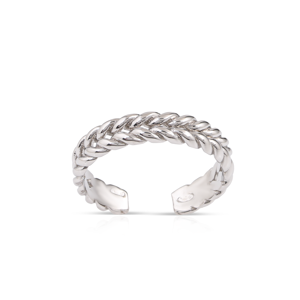 تميزي بإطلالة أنيقة ومتفردة مع خاتم فضي بتصميم ضفيرة. مصنوع من فضة عيار 925 ومطلي بالروديوم لضمان اللمعان والحماية من التآكل، يتميز هذا الخاتم بتصميمه المستوحى من الضفائر ليضفي لمسة راقية وناعمة على إطلالتك اليومية أو الرسمية.