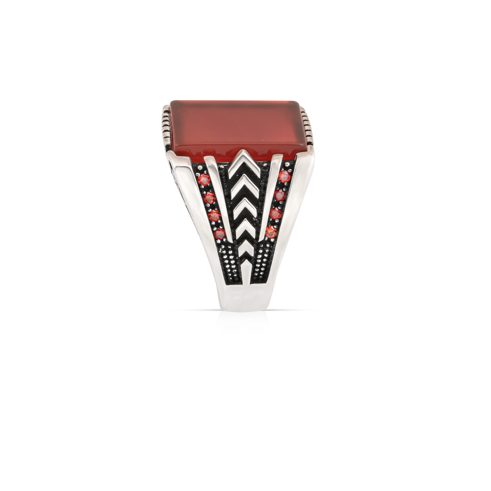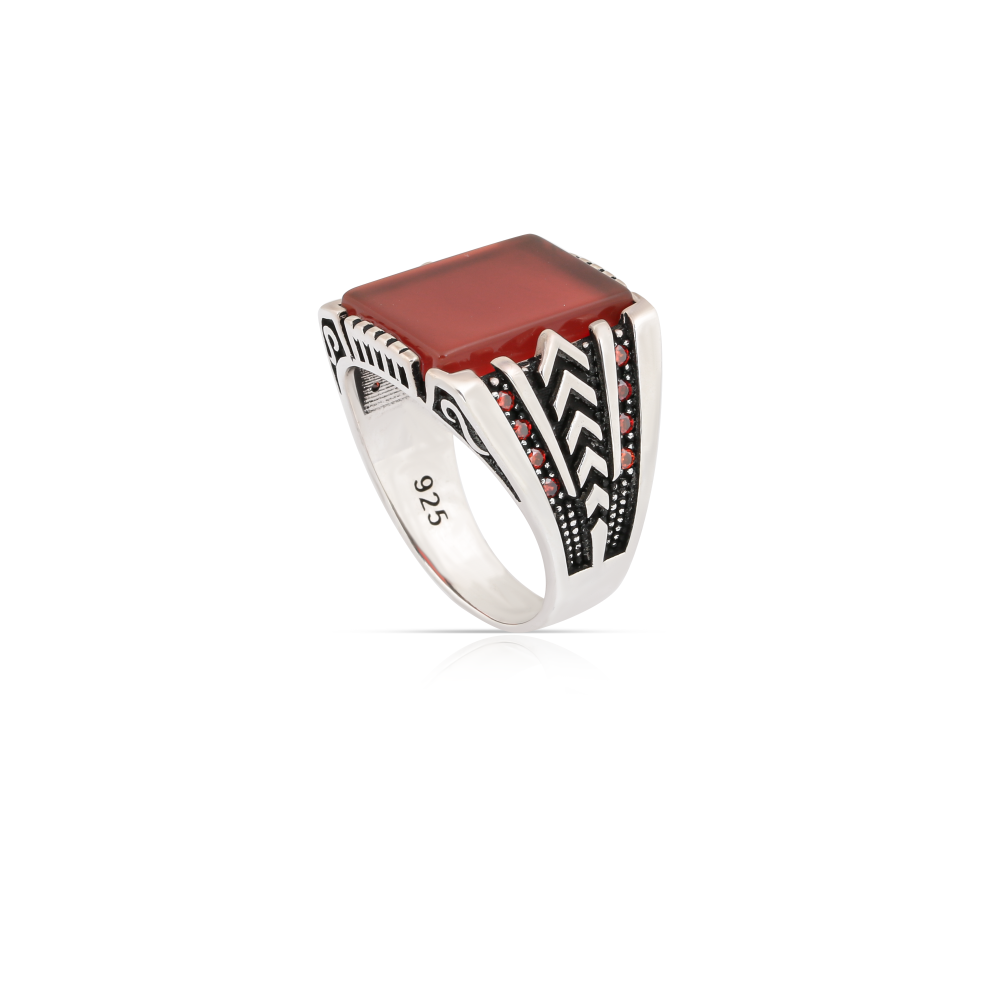 أضف لمسة من الأناقة والتفرد مع خاتم فضة بحجر أونيكس أحمر قاني. تصميمه الفاخر يتميز بالحرفية اليدوية الدقيقة، مما يجعله قطعة استثنائية تضفي جمالًا خاصًا على إطلالتك.