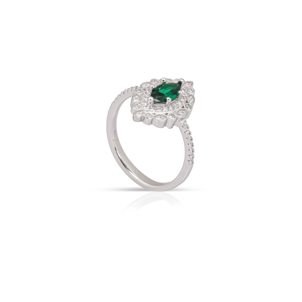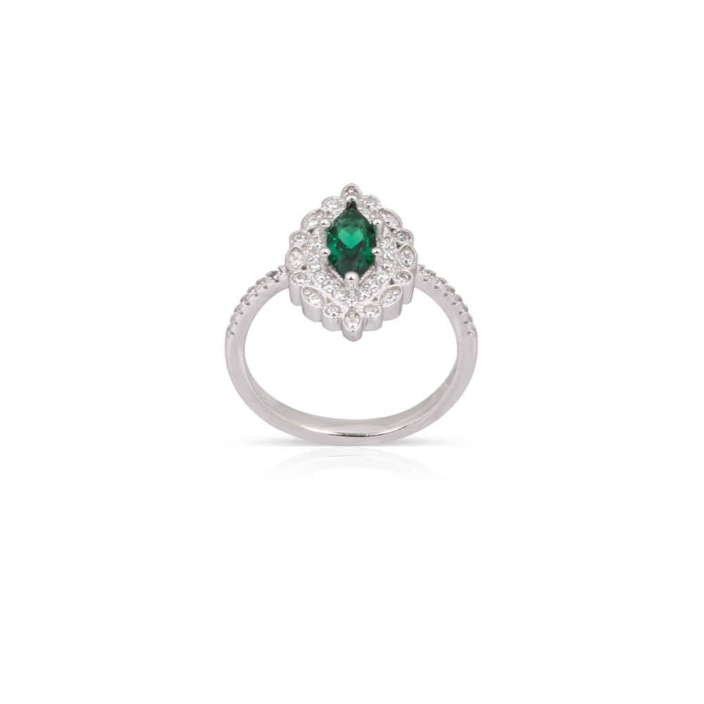 اللون: فضي مطعم بأحجار ملونة خضراء .