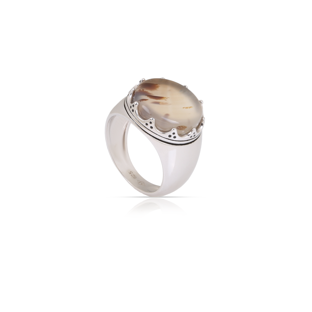 - التصميم: إطار فضي أنيق يبرز الحجر بحرفية عالية، مع لمسات كلاسيكية تعكس الذوق الرفيع.