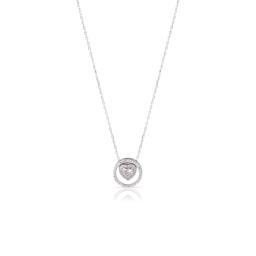 ✨ سلسلة فضة مزينة بدائرة زركون وقلب - تصميم أنيق ورومانسي ✨