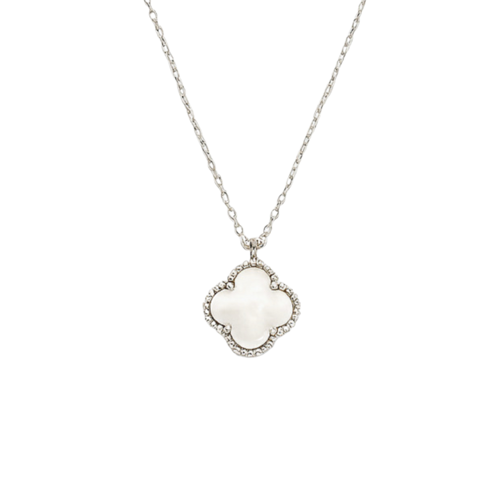 اكتشفي رقي التفاصيل مع هذه السلسلة الفاخرة المصنوعة من فضة عيار 925، بتصميم أنثوي على شكل وردة من الصدف الأبيض الطبيعي،