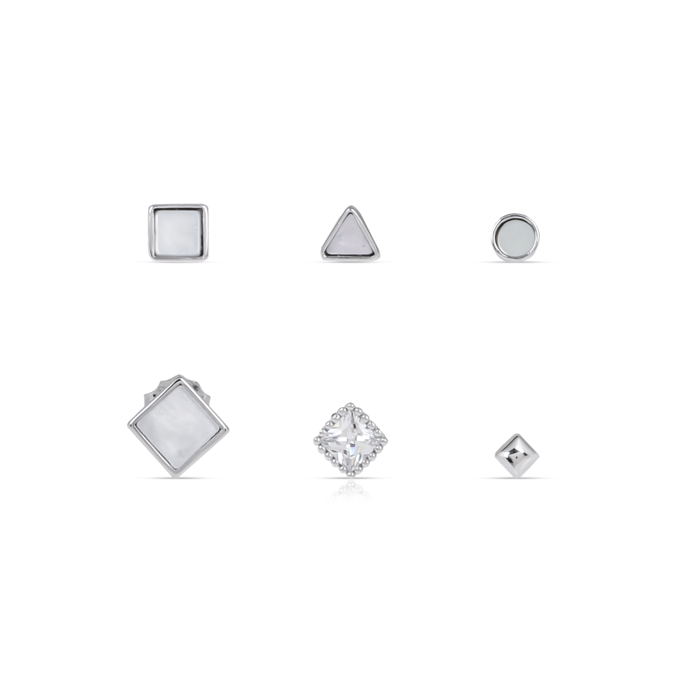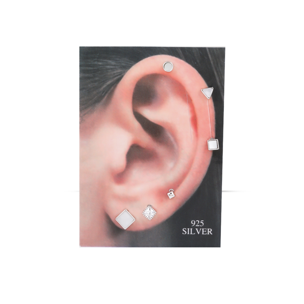 مجموعة أقراط صغيرة من فضة عيار 925 بتصاميم متنوعة تجمع بين الرقي والنعومة.