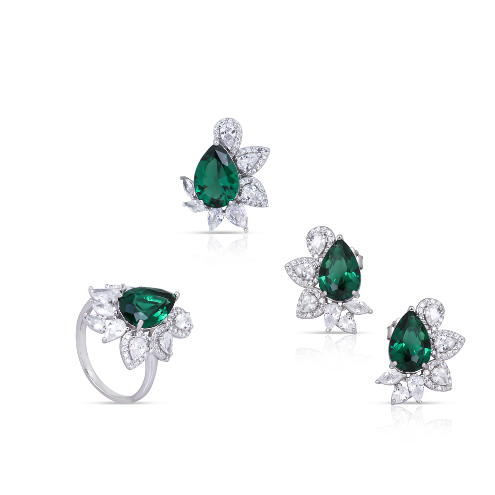 نص طقم فضة حجر زمرد